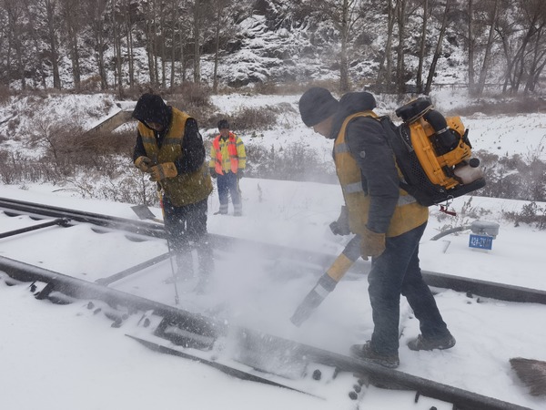 人民網(wǎng)哈爾濱11月6日電 (尚城)11月6日,黑龍江省迎來暴雪、雨雪冰凍、大風(fēng)天氣,此次過程影響范圍廣、降雪量大,局地降水量可能接近或突破歷史同期極值。中國鐵路哈爾濱局集團(tuán)有限公司第一時(shí)間對受降雪影響主要鐵路區(qū)段啟動預(yù)警,調(diào)集大功率風(fēng)力除雪機(jī)、重型軌道車、除雪車輛、熱滑除冰列車等設(shè)備參與除雪工作。為確保旅客列車和人民群眾出行絕對安全,哈鐵有序開展行車調(diào)度、清冰除雪、設(shè)備巡檢、旅客疏導(dǎo)、安全防護(hù)等應(yīng)急處置工作,根據(jù)雪情科學(xué)調(diào)整運(yùn)輸方案,盡最大努力減少惡劣天氣對運(yùn)輸秩序的影響。